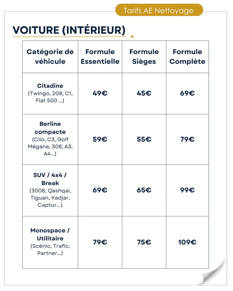 Les suppléments sont indiqués avant la prestation, après évaluation du véhicule.